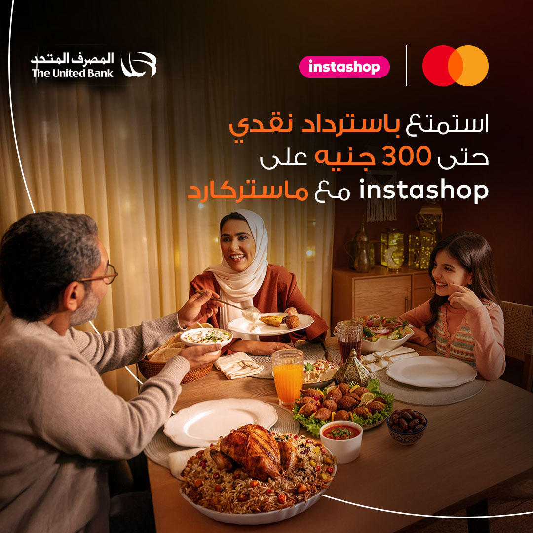 احصل على استرداد نقدي حتى ٣٠٠ ج.م على طلبك التالي عند إجراء أول طلب لك عبر إنستشوب باستخدام بطاقات ماستركارد من المصرف المتحد، يسري العرض من ١٩ فبراير ٢٠٢٦ وحتى نهاية شهر رمضان ٢٠٢٦. تطبق الشروط والأحكام