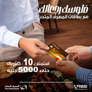 Enjoy 10% cashback on all your purchases from any restaurant or supermarket when using The United Bank credit or debit cards from March 18 to April 18, 2026. Terms and conditions apply.