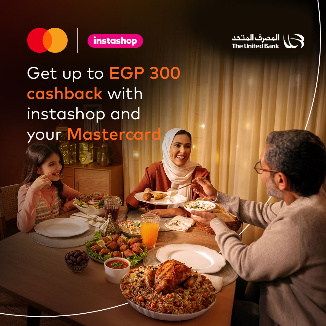Enjoy up to EGP 300 cashback on your next order when you place your first instashop order with your United Bank Mastercard, Offer is valid from February 19 2026 until the end of Ramadan 2026. Terms and conditions apply